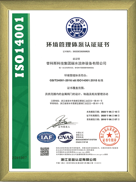 ISO14001環境管理體系認證證書