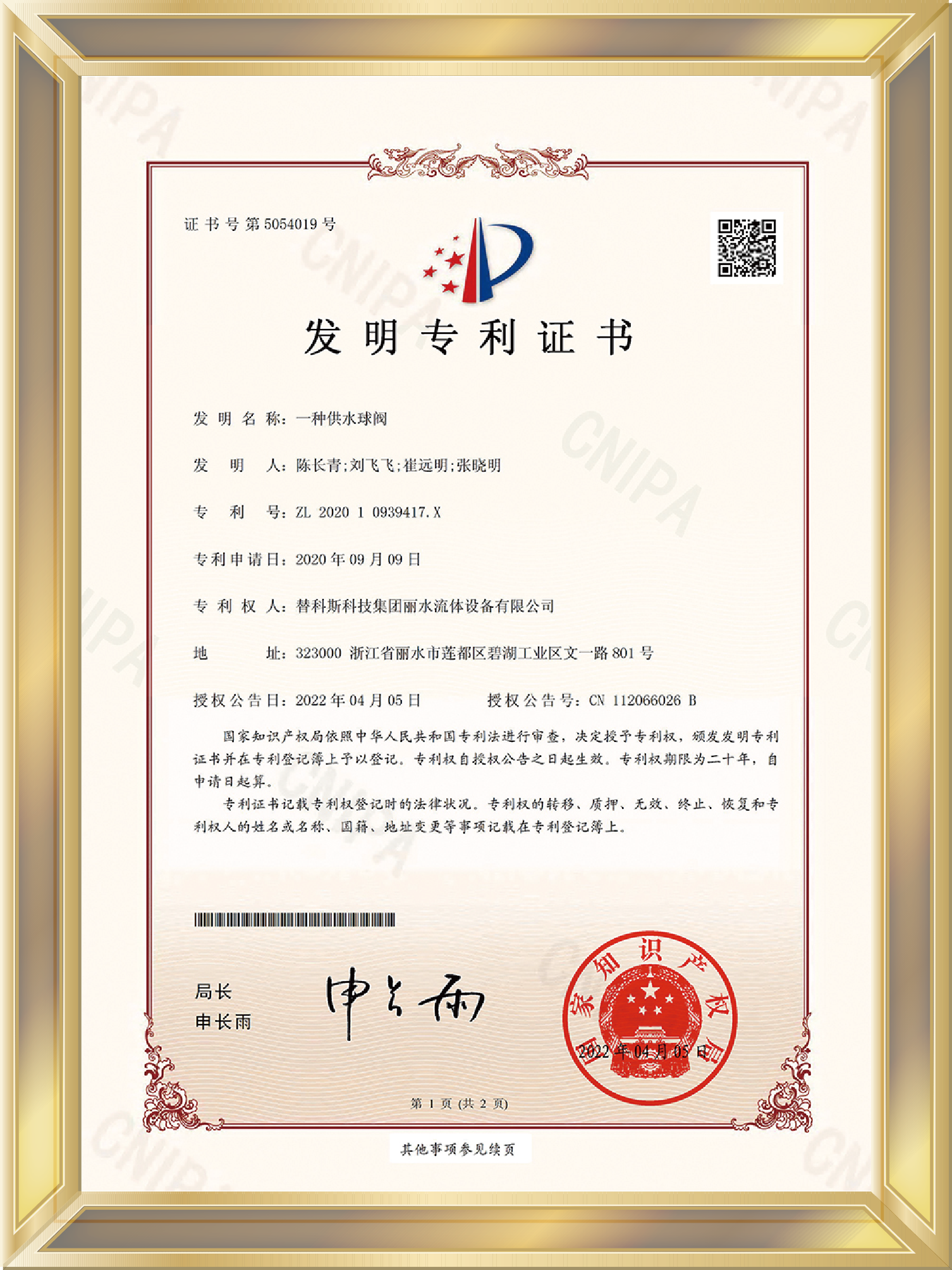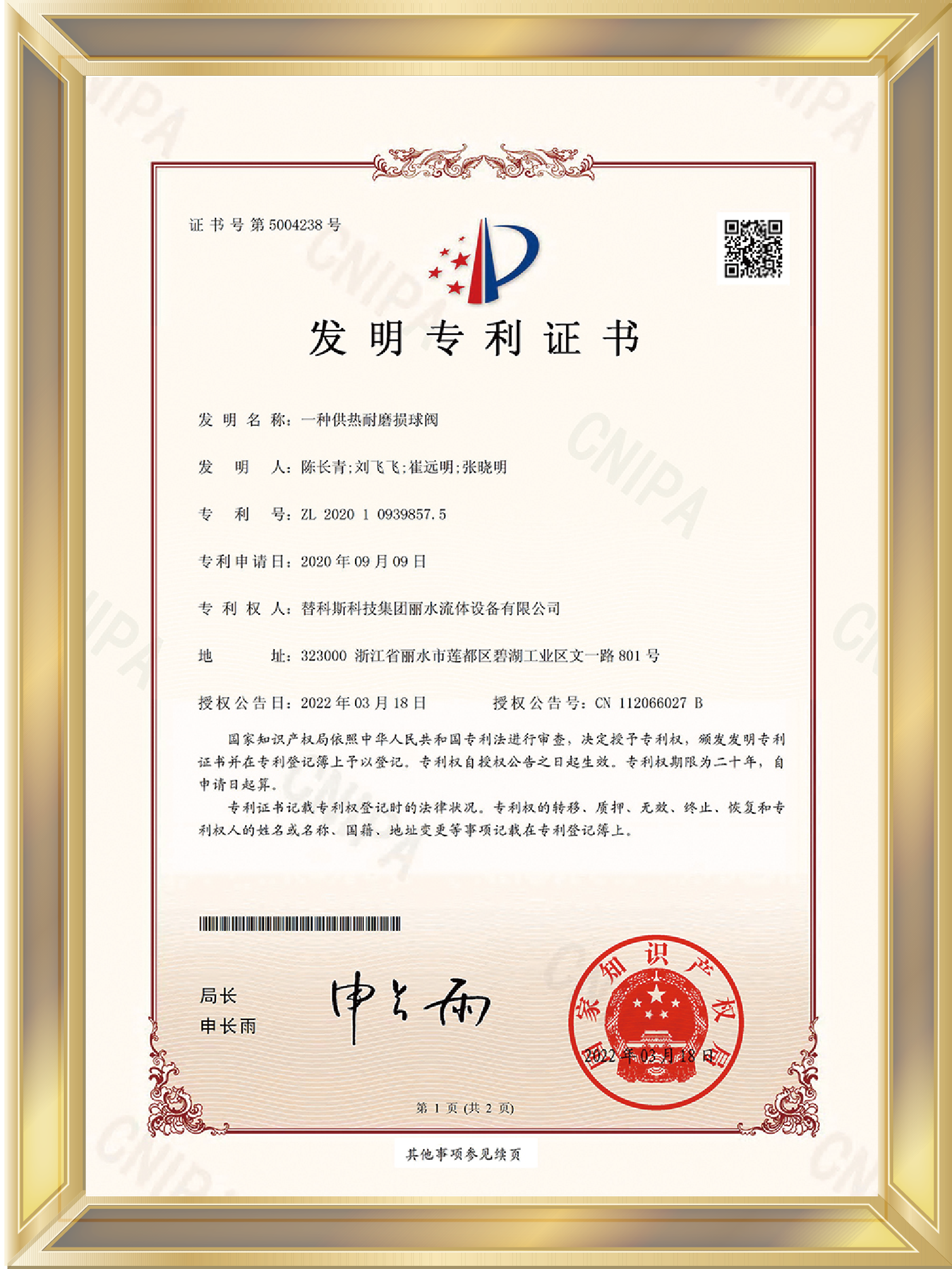 標準編寫證書-城鎮供熱用焊接球閥